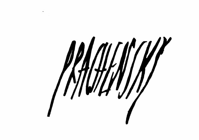 Prachenskys künstlerische Anfänge standen zunächst im Zeichen des geometrisch Abstrakten, von dem er sich jedoch bald wieder löste. Die hier gezeigte Papierarbeit „Rouge sur Noir“ aus dem Jahr 1958 ist ein Zeugnis dieser Entwicklung: Eine gestische Bewegung im Malprozess verbindet sich mit roter Farbe auf dunklem Bildgrund. In den 1960er Jahren verändern sich die Bildhintergründe. Weiß, auch Grau treten an die Stelle der dunklen Grundierungen. Gleichzeitig wird die Gestik der Malerei dynamischer und stürmischer. Der Rhythmus der Pinselschrift erinnert nun häufig an kalligraphische Zeichen. Trugen seine Bildserien ab Mitte der 1950er Jahre die Namen ihrer Entstehungsorte – etwa Berlin, Wiesbaden oder Aschaffenburg –, so verweisen die Titel ab den 1970er Jahren zunehmend auf Reiseziele, die als Inspirationsquellen für die jeweiligen Serien dienten.